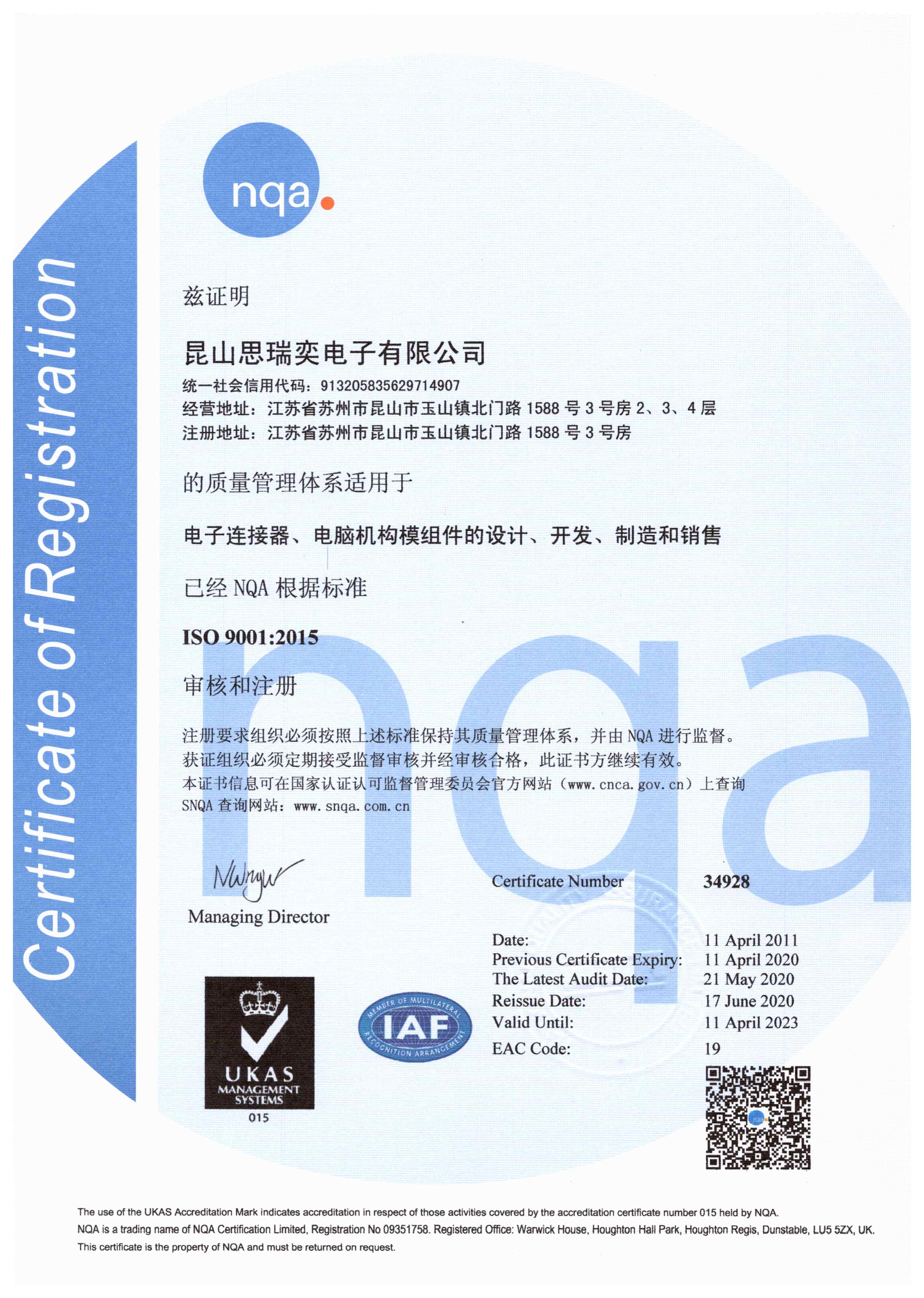 思瑞奕電子有限公司成立于2010年10月,注冊資金7500萬人民幣,總部位于江蘇省昆山市,在重慶、江蘇東臺、江蘇太倉設有分廠,公司于2011年通過ISO9001/ISO14001認證,2013年通過高新技術企業和TS16949(IATF)體系認定,2016年先后通過知識產權管理體系認證、安全生產標準化認證,2017年獲頒江蘇省民營科技企業、2018年先后獲得蘇州市人民政府認定企業技術中心、科技部認定中小型科技企業、江蘇省最具成長性高科技企業、2020年獲得江蘇省人民政府認定企業技術中心、2021年獲得蘇州市瞪羚計劃入庫企業、江蘇省省級工程技術研究中心、江蘇省專精特新中小企業等榮譽稱號......